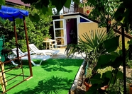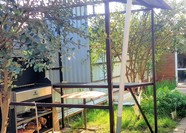 Под тенистым навесом во дворе есть кухня для самостоятельного приготовления пищи, есть вся необходимая посуда.
